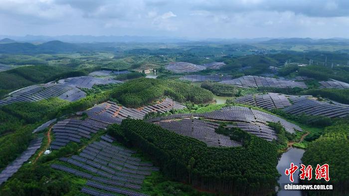 初秋清晨,陽光穿過層疊的光伏板,將廣西崇左市江州鎮(zhèn)板崇村后山的坡地“鍍上”金色,光伏板下卻是一片盎然生機(jī):五指毛桃舒展著“五爪”葉片,空氣中浮動著椰香,天冬、百步從行間探頭,為3722畝的“光伏海洋”繡上綠邊。