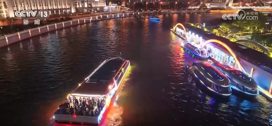除了博物館內的精品文物給大家?guī)砹宋幕⒀?,入夜后的海河璀璨絢麗,海河之夜美景再升級。沿線建筑、橋梁及碼頭的燈光景觀全面提升,飽覽海河兩岸美景的海河游船也打造了全新體驗。