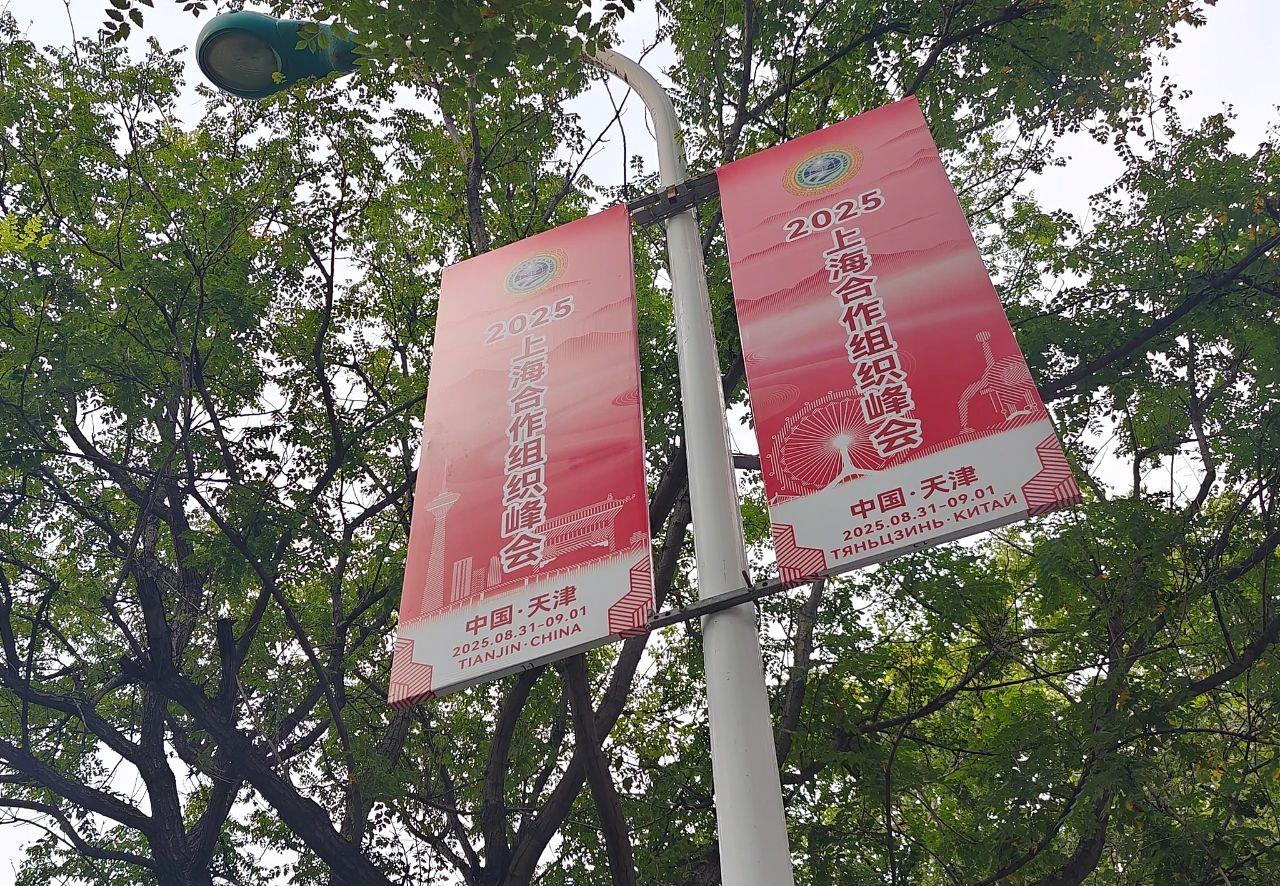走進天津,會發(fā)現(xiàn)體現(xiàn)上合元素的旗幟已經(jīng)掛滿天津主干道路兩側,賞心悅目的花籃也點綴在大街小巷。