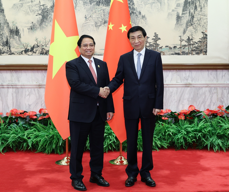 9月1日,全國政協(xié)主席王滬寧在北京會見來華出席2025年上海合作組織峰會的越南總理范明政。新華社記者 王曄 攝