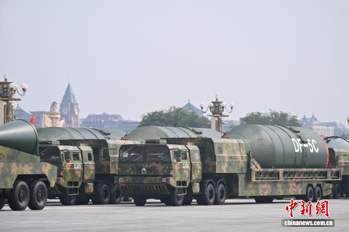9月3日,紀(jì)念中國(guó)人民抗日戰(zhàn)爭(zhēng)暨世界反法西斯戰(zhàn)爭(zhēng)勝利80周年大會(huì)在北京隆重舉行。圖為核導(dǎo)彈第二方隊(duì)“東風(fēng)-5C”液體洲際戰(zhàn)略核導(dǎo)彈駛過(guò)天安門廣場(chǎng)。 中新網(wǎng)記者 趙文宇 攝