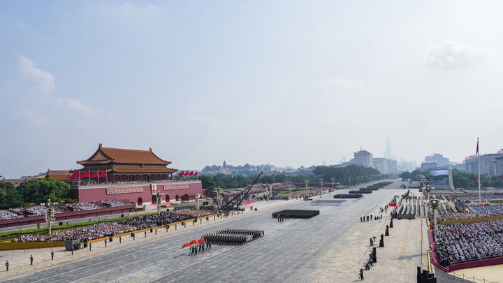 ↑9月3日,紀(jì)念中國人民抗日戰(zhàn)爭暨世界反法西斯戰(zhàn)爭勝利80周年大會在北京隆重舉行。這是徒步方隊接受檢閱。