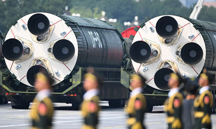 ↑9月3日,紀(jì)念中國人民抗日戰(zhàn)爭暨世界反法西斯戰(zhàn)爭勝利80周年大會在北京隆重舉行。這是核導(dǎo)彈第二方隊接受檢閱。