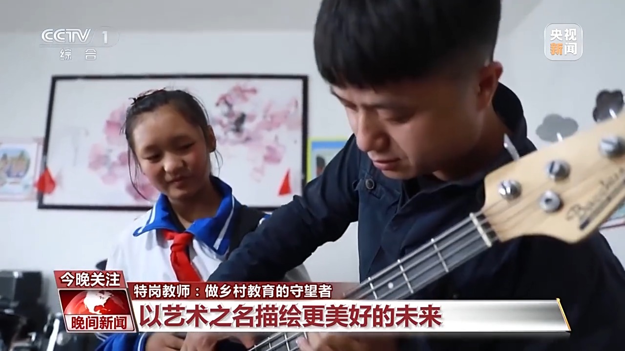在貴州省六盤水市的海嘎村,特崗教師顧亞帶領(lǐng)孩子們玩搖滾,感受音樂傳遞的快樂與力量。