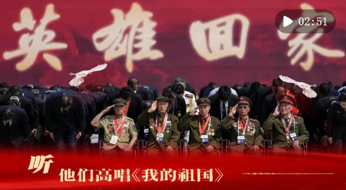 在沈陽抗美援朝烈士陵園,幾位志愿軍老兵唱起了《我的祖國》。他們用歌聲迎接戰(zhàn)友回家。