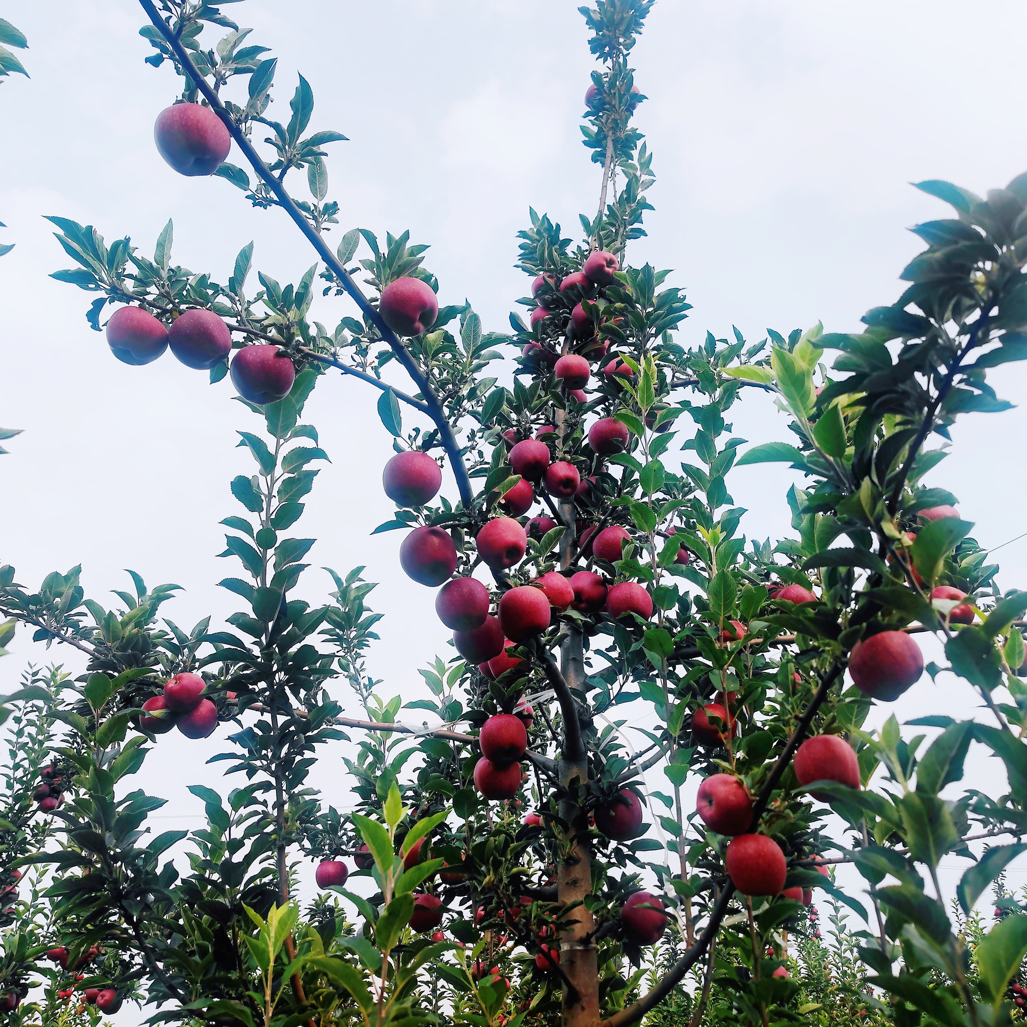 金秋時節(jié)的平原村蘋果產(chǎn)業(yè)園,550畝果樹長勢喜人。放眼望去,漫山遍野的蘋果樹上掛滿了紅彤彤的果實,像一個個紅燈籠,把枝頭壓得沉甸甸的。2017年至2018年栽種的323畝瓦里短枝蘋果與200多畝富士蘋果,今年全面進入盛果期。得益于今年自然災(zāi)害少、管理精細化,加之平原村光照充足、土壤肥沃的自然優(yōu)勢,這里的蘋果外形圓潤均勻、果面光潔細膩,咬下一口滿是香脆甜爽,早已成為消費者青睞的“心頭好”。