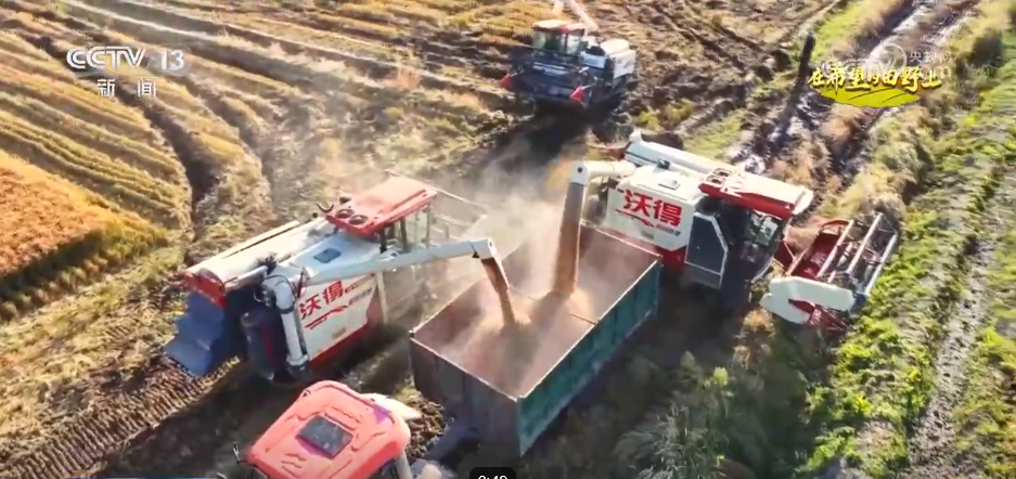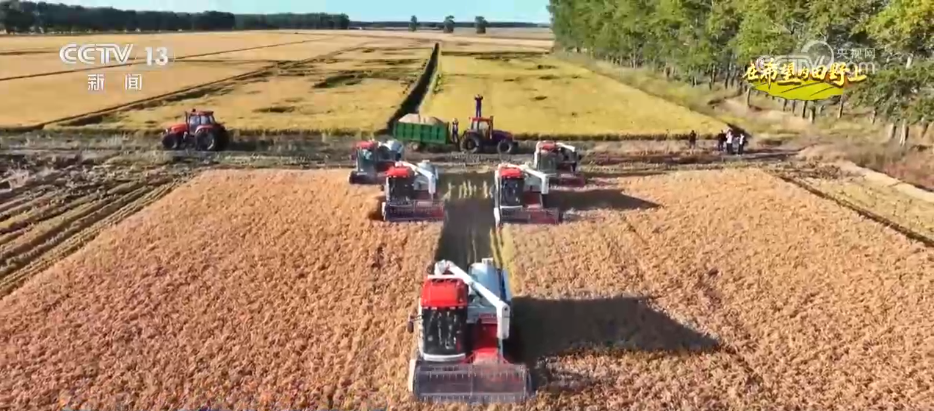 在綏濱縣新富鄉(xiāng)的稻田里,多臺現(xiàn)代化收割機(jī)正在緊張作業(yè)。伴隨著機(jī)器的轟鳴聲,一排排稻稈被快速卷入收割機(jī),經(jīng)過脫粒、篩選等工序,飽滿的稻谷源源不斷地從出糧口傾瀉而出,裝入一旁等候的運輸車輛中。
