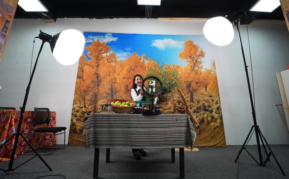 9月19日,尉犁縣電商協(xié)會負責人米日阿依·阿西木在達西村的電商基地直播推介達西村農產(chǎn)品。近年來,達西村構建“農戶生產(chǎn)+企業(yè)加工包裝+電商銷售+物流配送”全產(chǎn)業(yè)鏈,為縣域經(jīng)濟發(fā)展培養(yǎng)孵化本土直播電商人才,促進傳統(tǒng)產(chǎn)業(yè)轉型升級。