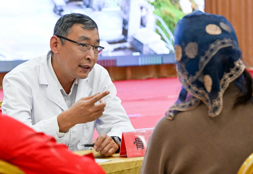 9月19日,鐵門關市人民醫(yī)院醫(yī)生在達西村為村民義診。