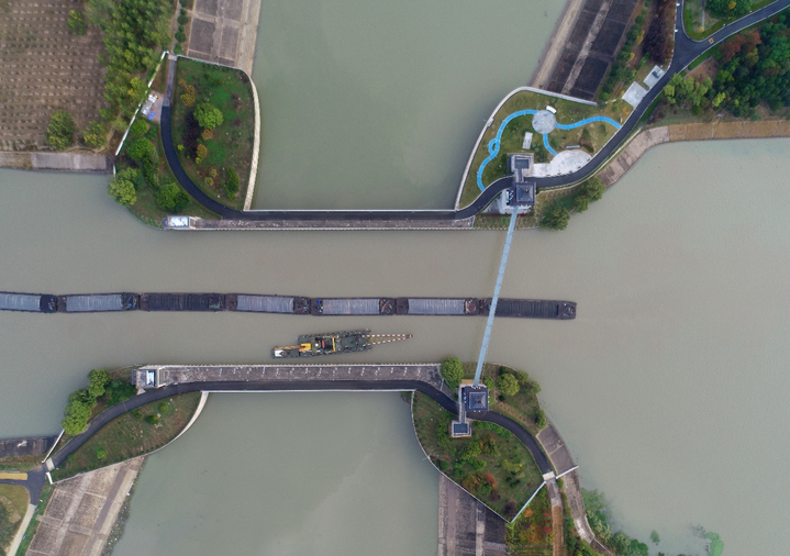 作為淮河入海水道二期工程的核心節(jié)點,淮安水利樞紐大運河水上立交建成便是“亞洲最大水立交”。京杭大運河、蘇北灌溉總渠、淮河入海水道,三條載入史冊的人工水道在此交匯,“兩橫一縱”的格局間,藏著建設(shè)者們最棘手的難題?!岸诠こ桃o鄰布置,水系又密、水頭還高?!蓖鹾橛裉直葎澲鴺屑~布局,“我們先做好基坑防滲工作,再通過開挖臨時導航明渠來保障運河航運,工程在緊鑼密鼓地推進?!?/p>