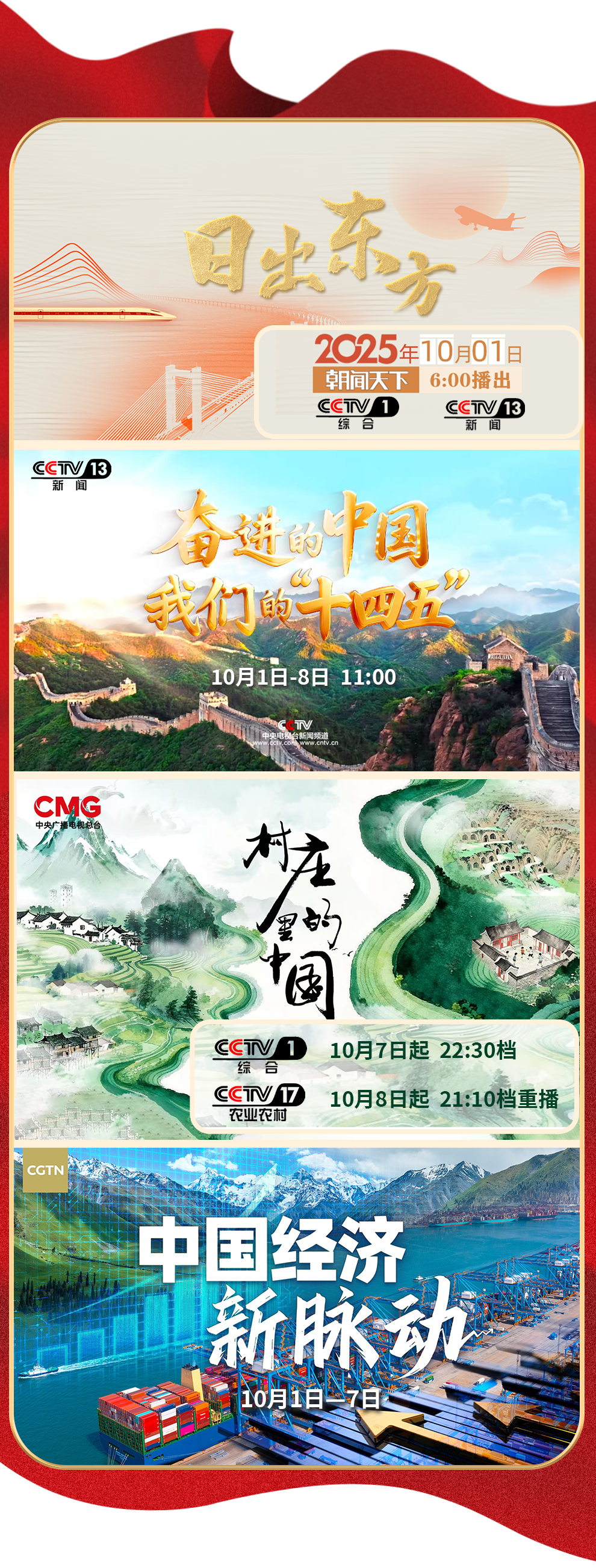 新時(shí)代中國的動人故事里,主角正是新征程上奮進(jìn)的你我。在雄壯的國歌聲中,跟隨特別報(bào)道《日出東方》,領(lǐng)略祖國山川的壯麗秀美,看晨曦中的中國人奮力拼搏的“此時(shí)此刻”。直播特別節(jié)目《奮進(jìn)的中國 我們的“十四五”》《向祖國報(bào)告》《團(tuán)結(jié)奮斗向復(fù)興》,全景展示中國式現(xiàn)代化建設(shè)成就。走進(jìn)《村莊里的中國》飽覽鄉(xiāng)村振興和美畫卷,走遍《可愛的中國》感受身邊的美好生活。走出國門,在全球化視野中,觸摸《中國經(jīng)濟(jì)新脈動》。