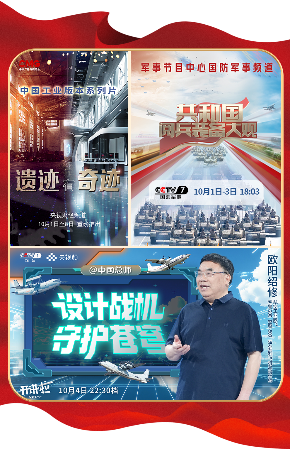 紀(jì)錄片《遺跡有奇跡》,深入探訪八個(gè)不同行業(yè)的工業(yè)遺址,展現(xiàn)中國工業(yè)發(fā)展的輝煌歷程。九三閱兵現(xiàn)場,新型察打一體無人機(jī)、空警-500預(yù)警機(jī)等硬核裝備令人振奮,《開講啦》“@中國總師”解讀中國軍工硬核實(shí)力,系列節(jié)目《共和國閱兵裝備大觀》帶你在鋼鐵洪流的轟鳴聲中見證軍工裝備的迭代升級,展示新時(shí)代中國科技創(chuàng)新帶來的大國力量!向前進(jìn),向前進(jìn),我們有信心、有底氣!