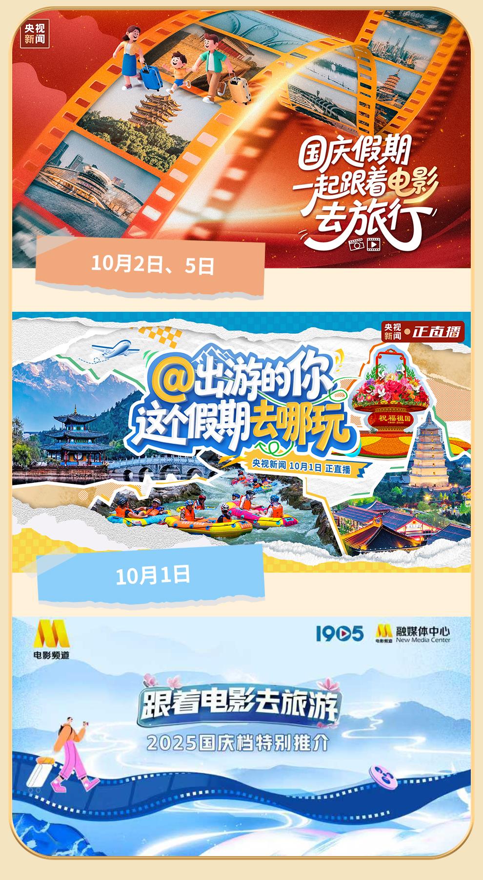 《國慶假期 一起跟著電影去旅行》《@出游的你 這個(gè)假期去哪玩?》還為大家策劃了第七站、第八站……準(zhǔn)備好出發(fā)了嗎?