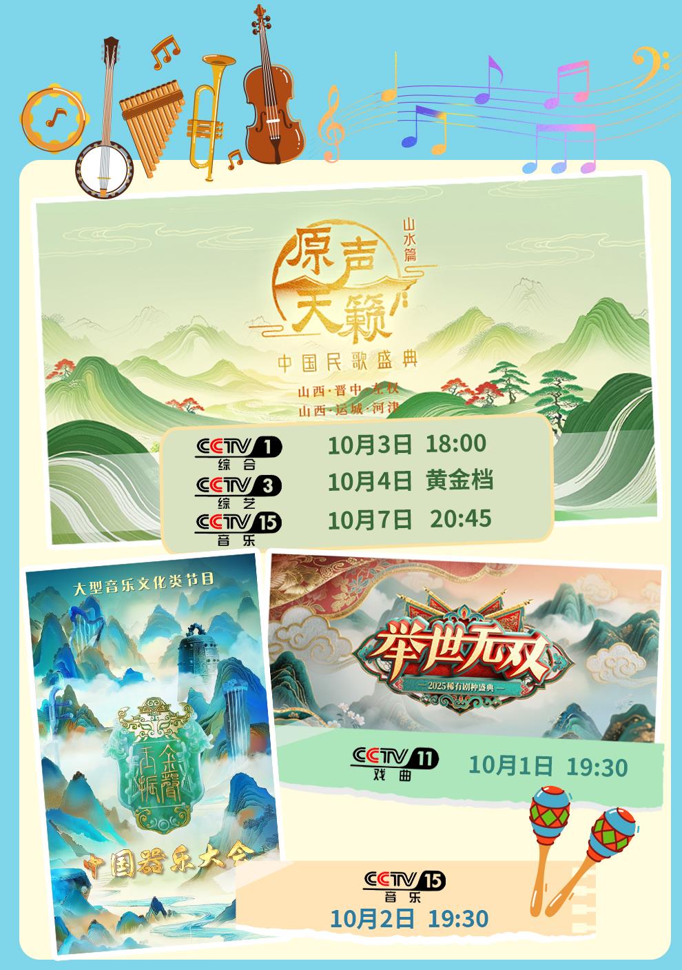 文藝節(jié)目,出新出彩!輕體量小鎮(zhèn)音樂會、稻田音樂會、河灘音樂會,《原聲天籟-中國民歌盛典》用民歌描繪山水間幸福畫卷。《金聲玉振——中國器樂大會》將賈湖骨笛、箜篌等古樂器與當(dāng)代編曲結(jié)合,奇妙組合帶來全新聽覺體驗(yàn)。《舉世無雙 2025稀有劇種盛典》匯集雁北耍孩兒、湖劇、阿宮腔等三十余個(gè)稀有劇種,盡展中華戲曲百花園獨(dú)特風(fēng)采。