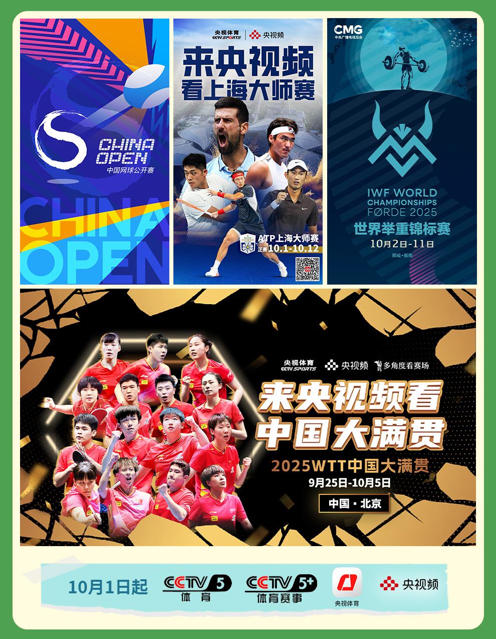 精彩賽事,激情無限!《2025年中國網(wǎng)球公開賽》《2025年世乒聯(lián)大滿貫賽(中國站)》《2025年ATP1000男子網(wǎng)球大師賽(上海賽)》《2025年世界舉重錦標(biāo)賽》等黃金賽事接連開賽,讓體育迷暢享運(yùn)動的無窮魅力。