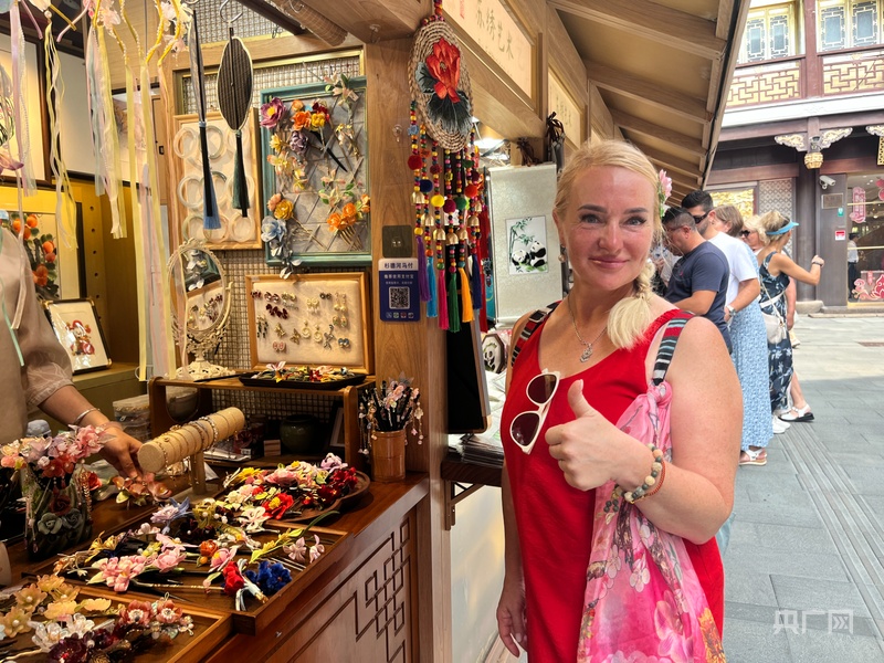 除了時尚消費的多元選擇,上海的特色消費更從“傳統(tǒng)好物”延伸至“科技潮品”,在滿足不同需求的同時,也向境外游客傳遞著中國文化的溫度與現(xiàn)代生活的便利?!拔屹I了很多中國茶葉,買了玉手串。我還買了各種絲綢制品,有漂亮的裙子、絲巾,還有一條可以和媽媽一起使用的絲綢毯子。”俄羅斯游客艾琳娜的行李箱里,裝滿了頗具中國風的優(yōu)質(zhì)商品,這些都是她眼中“最有中國味道的伴手禮”。