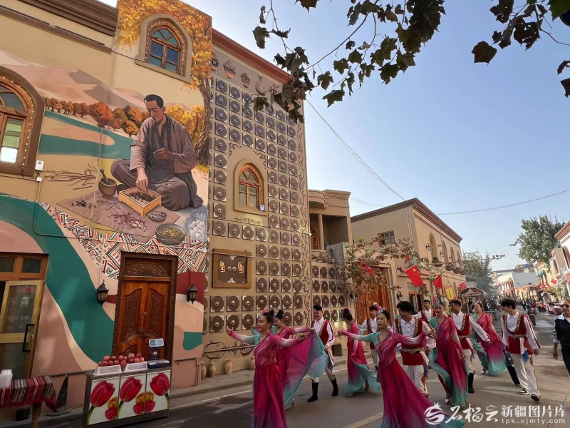 在墨玉縣,老城景區(qū)的“墻上博物館”成為游客感受文化、寄托情思的好去處。游客陳南方與愛(ài)人特意來(lái)到老街,在“在這里,向祖國(guó)致敬”的打卡點(diǎn)前合影留念。“早聽(tīng)說(shuō)墨玉是絲路南道的重要節(jié)點(diǎn),這面墻把古商隊(duì)穿越沙漠的場(chǎng)景畫(huà)活了,再想想現(xiàn)在的發(fā)展,真有種‘古今對(duì)話(huà)’的感覺(jué)!”來(lái)自烏魯木齊市的游客張斌站在《絲路駝?dòng) 穳η?,一邊拍照一邊感慨?/p>