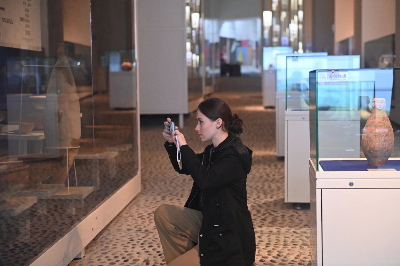 2024年10月22日,2024青年漢學(xué)家研修計劃甘肅班團隊22個國家的青年漢學(xué)家,走進甘肅省天水市秦安縣大地灣遺址參觀并進行專題研修。中新社記者 李亞龍 攝
