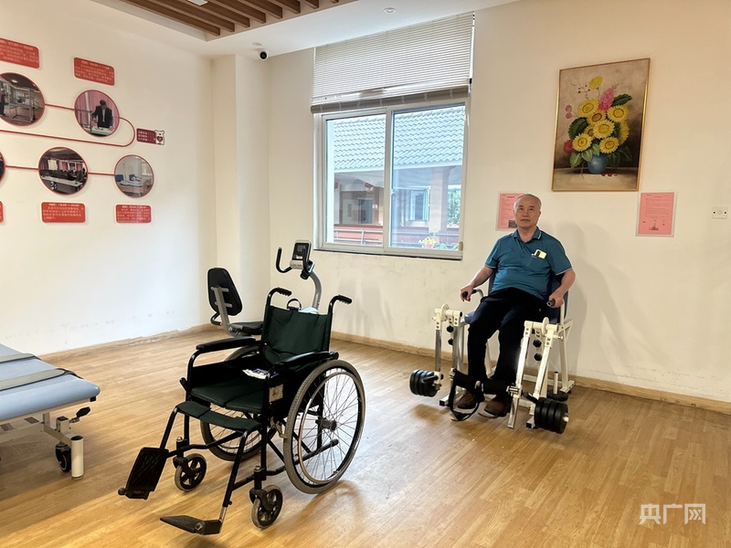 在頤養(yǎng)院的康復(fù)大廳,71歲的王金永爺爺正在器械上進(jìn)行康復(fù)訓(xùn)練。去年剛?cè)胱r(shí),他腿腳不便,經(jīng)過(guò)一年多的系統(tǒng)康復(fù)和中醫(yī)理療,行動(dòng)能力已明顯改善?!斑@里有護(hù)理院、康復(fù)室、娛樂(lè)室,我常去理療室做推拿,設(shè)備齊全,護(hù)理人員素質(zhì)也很高,對(duì)我們老人照顧得特別貼心。”王金永告訴記者。