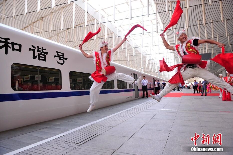 圖為2012年7月1日西安至延安動(dòng)車組列車首發(fā)。唐振江 攝