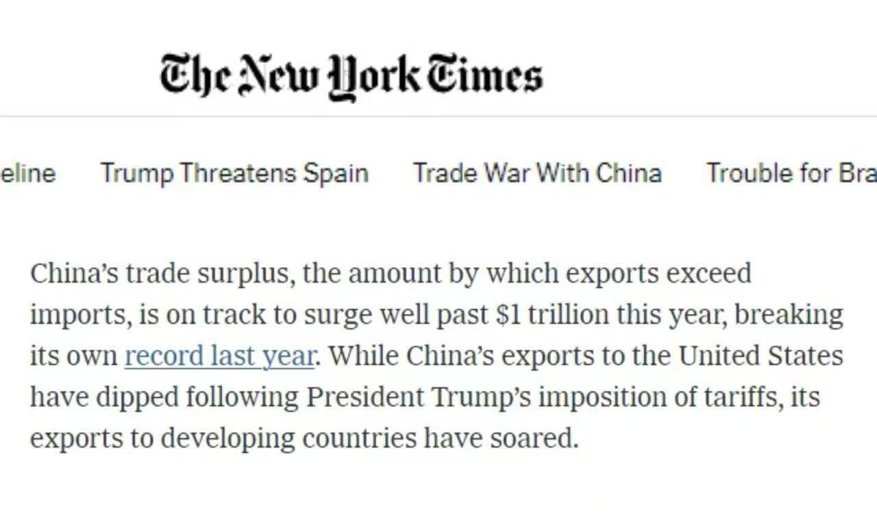 美國《紐約時(shí)報(bào)》的文章分析稱,強(qiáng)勁的出口和對新工廠的持續(xù)投資使中國經(jīng)濟(jì)在夏季保持穩(wěn)定增長。中國的出口投資以及用國產(chǎn)商品取代進(jìn)口的政策繼續(xù)推動著經(jīng)濟(jì)增長。與去年同期相比,商品貿(mào)易順差在過去三個月中增加了12.4%。中國的貿(mào)易順差今年有望超過1萬億美元,主要得益于中國對發(fā)展中國家的出口激增。