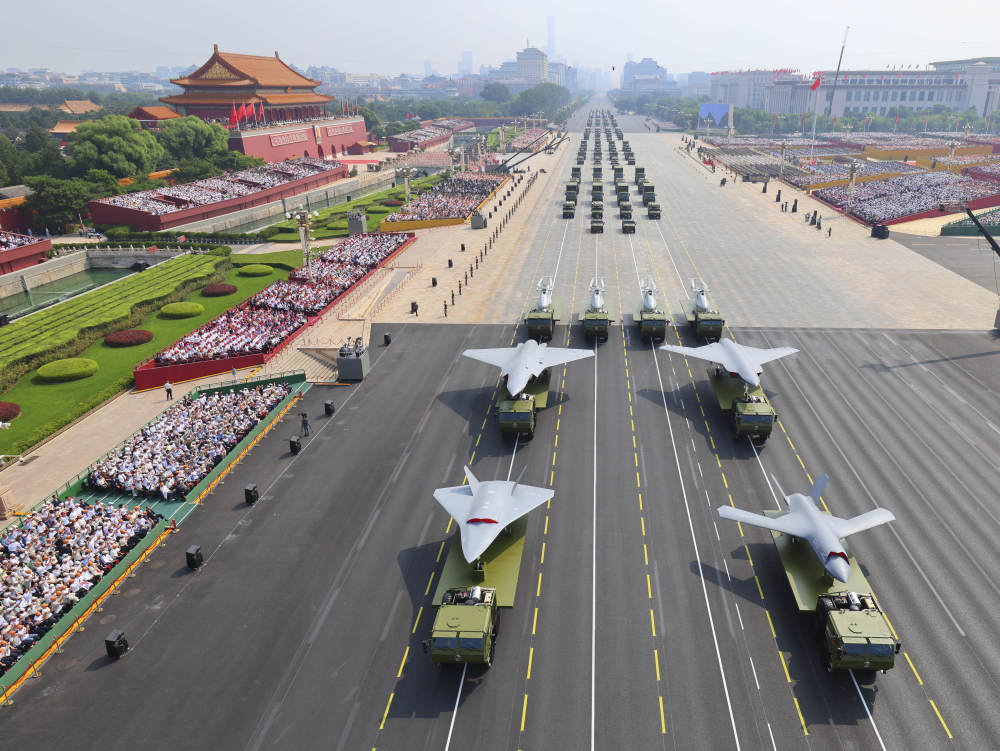 9月3日,紀念中國人民抗日戰(zhàn)爭暨世界反法西斯戰(zhàn)爭勝利80周年大會在北京隆重舉行。這是裝備方隊接受檢閱。新華社記者 劉續(xù) 攝