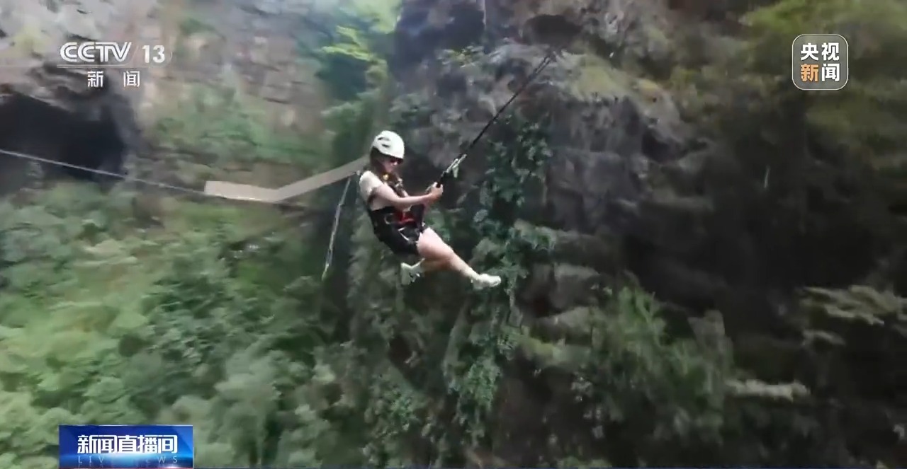 除了用丑萌可愛的物品彰顯個性,旅行“必出片兒”也成為當(dāng)下很多年輕人表達(dá)自我的一種方式。今年暑期開始,貴州開陽縣猴耳天坑景區(qū)異?;鸨?。這里是一處典型的巖溶漏斗,直徑約300米,坑深約280米,依托獨(dú)特的地質(zhì)奇觀,當(dāng)?shù)亻_發(fā)出了蹦極、大秋千、探洞等多種極限運(yùn)動。而就在如此驚險(xiǎn)刺激的體驗(yàn)之下,也要出片!