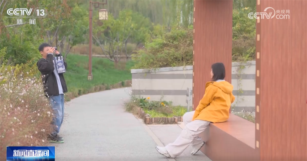 “秋日長椅三分鐘計劃”創(chuàng)新推出了三大電影畫框場景。朝陽公園的饅頭柳以其獨(dú)特的“西蘭花”樹形,成為市民“出片兒”的熱門機(jī)位。在地壇公園,畫框?qū)⒐虐嘏c銀杏林定格,皇家園林的秋日氣韻引來游客駐足。