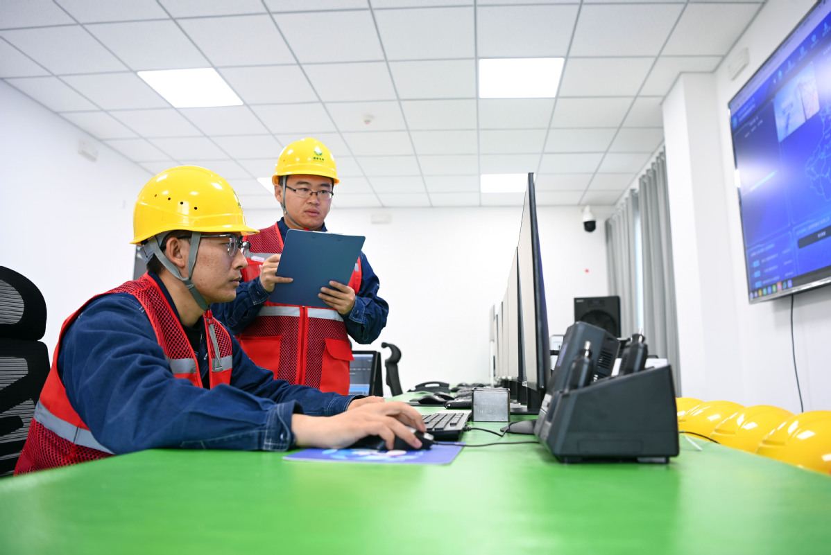 2025年10月19日,在且末750千伏變電站主控樓,運維人員執(zhí)行調(diào)度指令進行送電操作。(馬元攝)