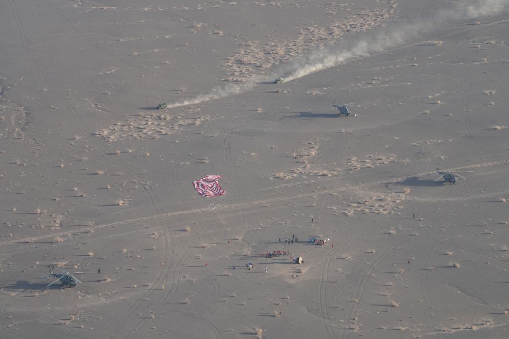 14日下午,返回艙主傘打開瞬間,酒泉衛(wèi)星發(fā)射中心李斌斌已鎖定跟蹤,實(shí)時(shí)畫面?zhèn)飨蛑缚卮髲d。空中分隊(duì)、地面分隊(duì)等向落點(diǎn)集結(jié),共同搭建起“空地一體、立體協(xié)同”多維搜救體系。