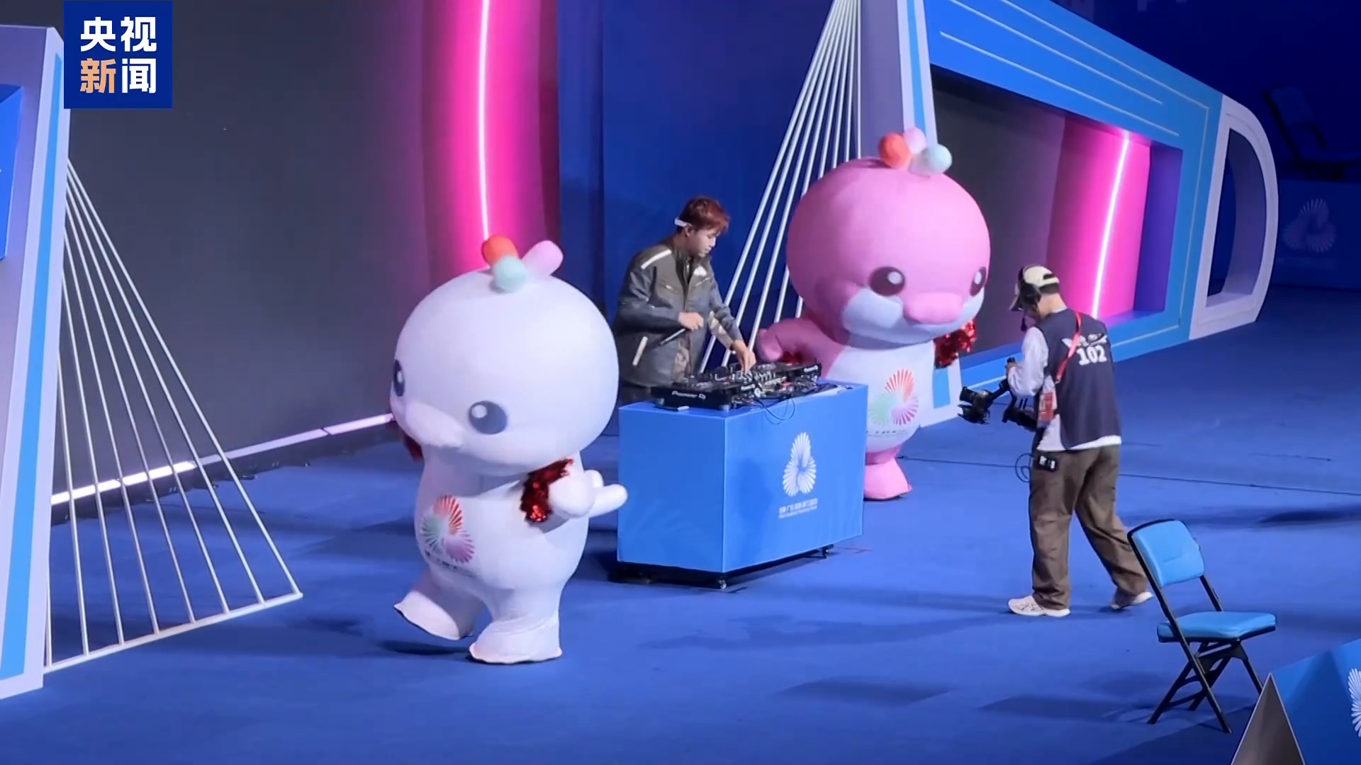 除了開幕式上的布偶吉祥物,體育館里的充氣吉祥物扮演者,則是各個場館的大學生志愿者。相比于厚重的毛絨材質(zhì)玩偶服,志愿者的充氣服裝更顯復雜。不過,觀眾不太能看出其中的差別。
