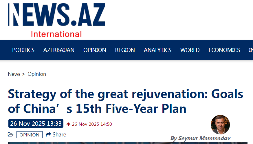 近日,國際專家俱樂部EurAsiaAz主任塞繆爾·馬邁多夫在阿塞拜疆“News.Az”國際新聞網(wǎng)發(fā)表文章稱,在全球進入“戰(zhàn)略不確定時代”的背景下,中國謀定而后動,以罕見的長遠戰(zhàn)略眼光和堅定的執(zhí)行力,給出了截然不同的答案。
