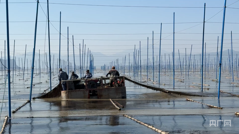 養(yǎng)殖戶正在采收頭水紫菜(央廣網(wǎng)記者 李曉曉 攝)