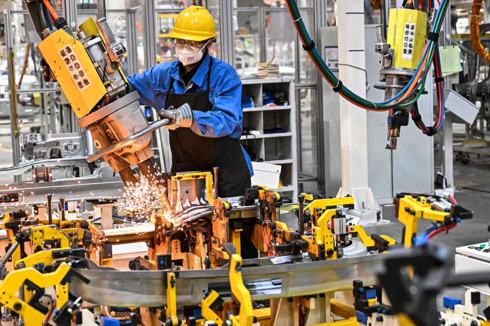 12月12日,在河南省商丘市豫商經(jīng)濟(jì)技術(shù)開發(fā)區(qū)一家新能源汽車企業(yè),工人在新能源輕卡車生產(chǎn)線上趕制產(chǎn)品訂單。新華社發(fā)(李恒攝)