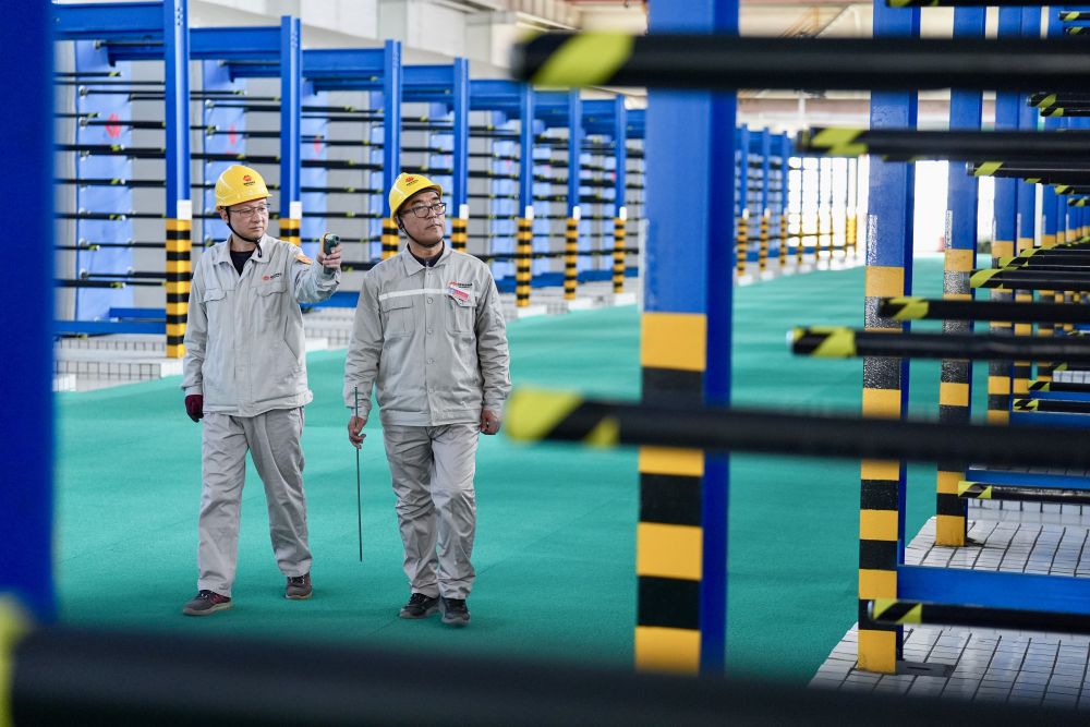 11月18日,在位于寧夏銀川的國能寧夏供熱有限公司中繼泵站內,工作人員對板式換熱器進行巡檢。新華社記者 楊植森 攝