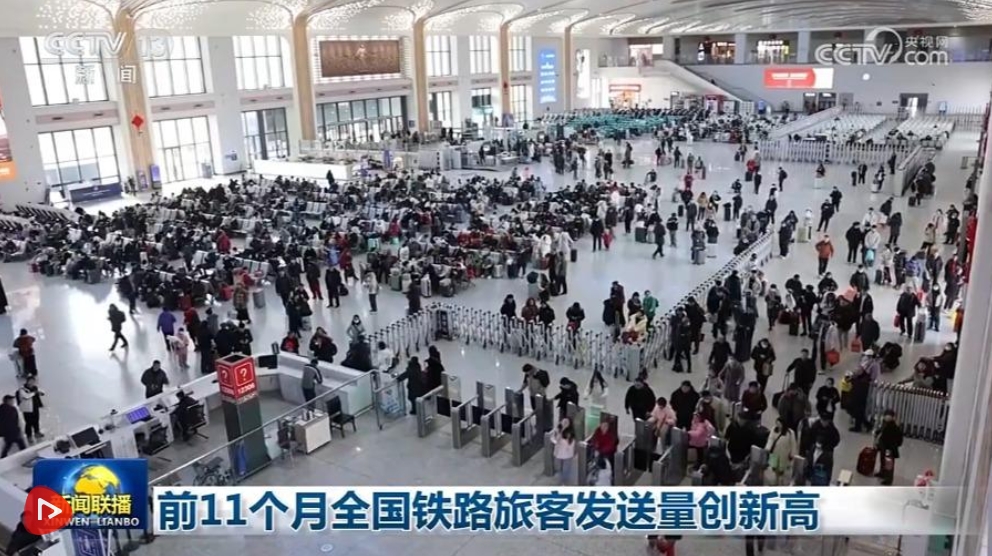央視網(wǎng)消息(新聞聯(lián)播):記者從國鐵集團獲悉,今年1至11月,全國鐵路發(fā)送旅客42.8億人次,同比增長6.6%,創(chuàng)歷史同期新高。