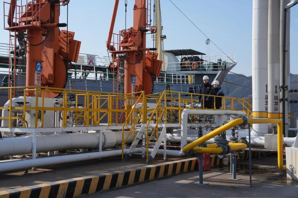 圖為長(zhǎng)三角海關(guān)開展保稅燃油跨關(guān)區(qū)直供業(yè)務(wù)。(上海海關(guān)供圖)