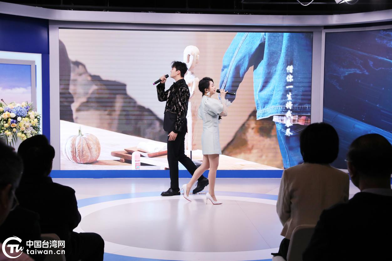 發(fā)布會(huì)現(xiàn)場(chǎng),來(lái)自中國(guó)臺(tái)灣地區(qū)的青年歌手魏暉倪與中國(guó)鐵路文工團(tuán)青年歌唱演員趙學(xué)飛對(duì)唱《青山青》主題曲。(中國(guó)臺(tái)灣網(wǎng)記者 陳佳慧 攝)