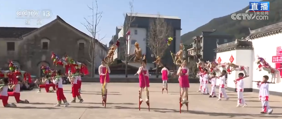 旁邊進行的是踩高蹺表演,和北方高蹺相比,河上鎮(zhèn)高蹺的高度并不算高,但卻格外講究“鮮”跟“活”。小朋友們踩著高蹺,時而轉(zhuǎn)身,時而跳躍,動作靈動又驚險,這正是傳統(tǒng)文化傳承中最動人的模樣。