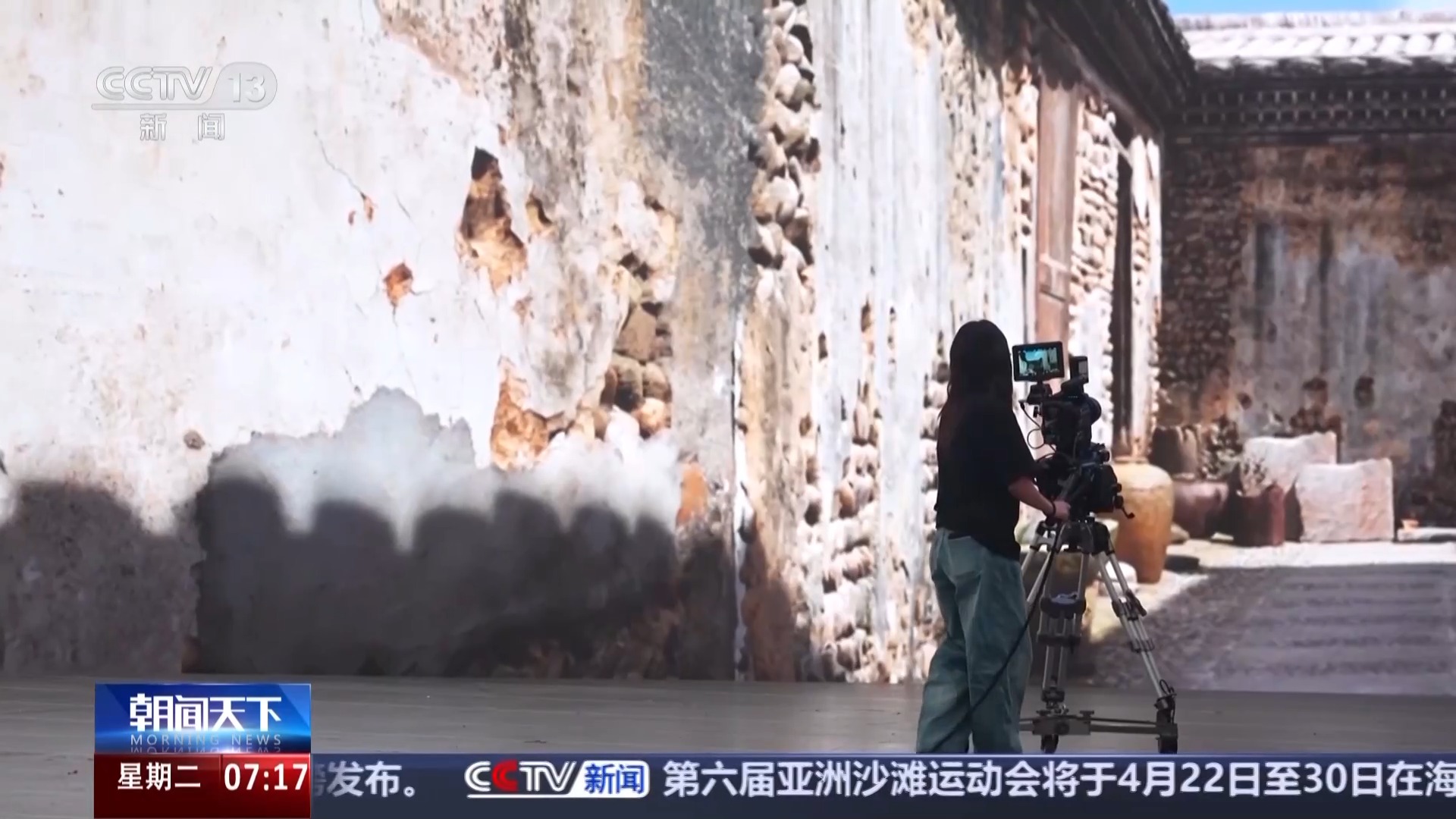 總臺央視記者 楊理天:這里是一座恐龍博物館,恐龍模型栩栩如生。恐龍突然張開大嘴,視覺效果非常震撼。不過,轉眼間,我就來到了故宮,下一秒,故宮飄起了雪花。地點一鍵切換,天氣瞬間變化,這就是最新的電影虛擬拍攝技術帶來的神奇體驗。