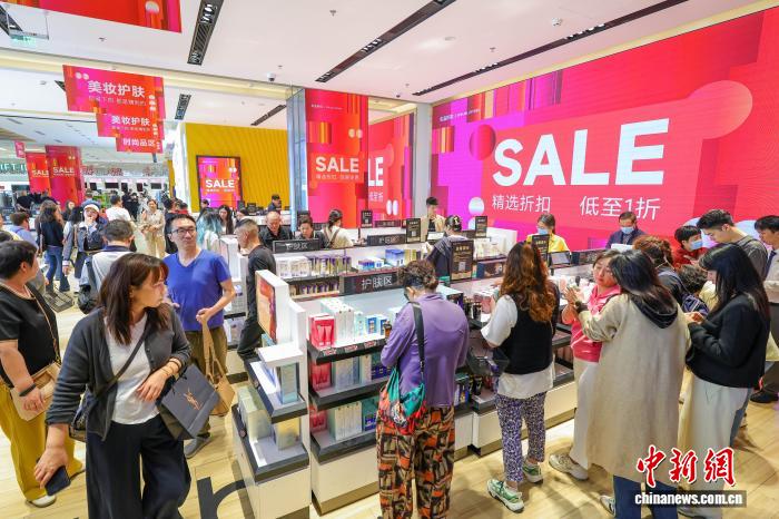 圖為元旦假期,cdf??趪H免稅城迎來購物熱潮,眾多游客前來選購心儀商品。 中新網(wǎng)記者 駱云飛 攝
