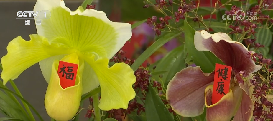 在北京花卉交易中心,各色年宵花爭奇斗艷。其中,新品蘭花“兜蘭”十分惹眼,獨(dú)特的兜形花瓣里,被放入“順?biāo)臁薄敖】怠钡淖8?ㄆ?,寓意“兜住順?biāo)臁薄岸底〗】怠?,祝福滿滿,年味十足。