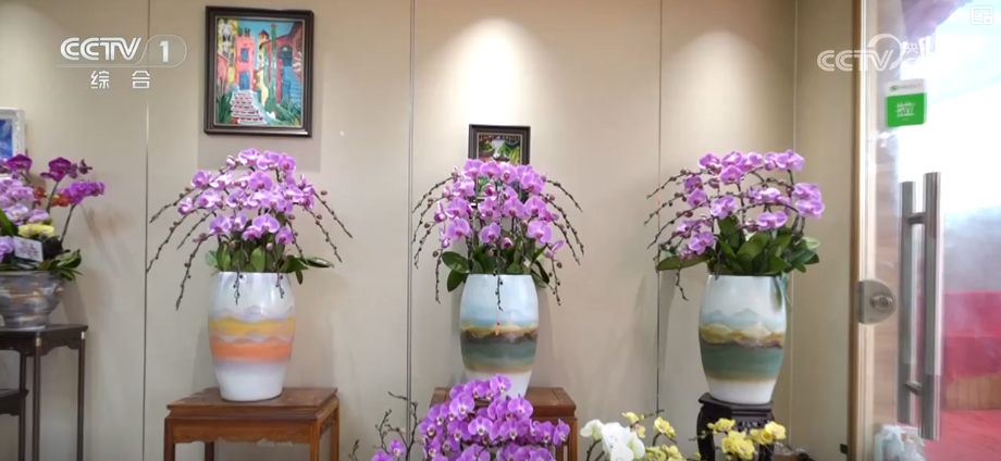 這是花藝師從眾多蝴蝶蘭中,挑選出枝干挺韌的株型作為“骨架”,再用手工慢慢牽引、固定而成。除了蝴蝶蘭組合的奔馬造型,花枝飄逸的祥云造型,花開成樹的羅漢松造型,都深受市場歡迎。