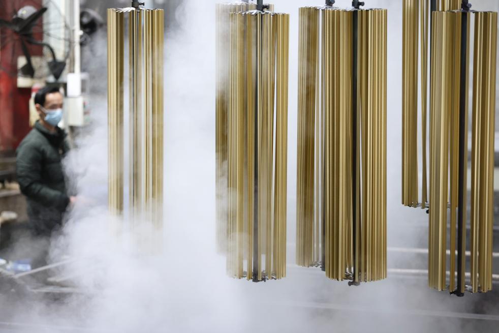 1月19日,工人在位于浙江省湖州市德清縣乾元鎮(zhèn)的浙江沃德新材料科技有限公司車間趕制鋁型材產(chǎn)品訂單。新華社發(fā)(倪立芳攝)
