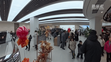 1月14日,消費(fèi)者在湖北省武漢市一家購物中心選購新能源汽車。新華社發(fā)(趙軍攝)