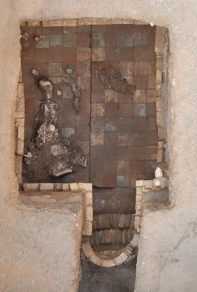 這是庫(kù)車(chē)市友誼路墓群發(fā)掘出土的唐代斜坡墓道磚室墓。(新疆文物考古研究所供圖)