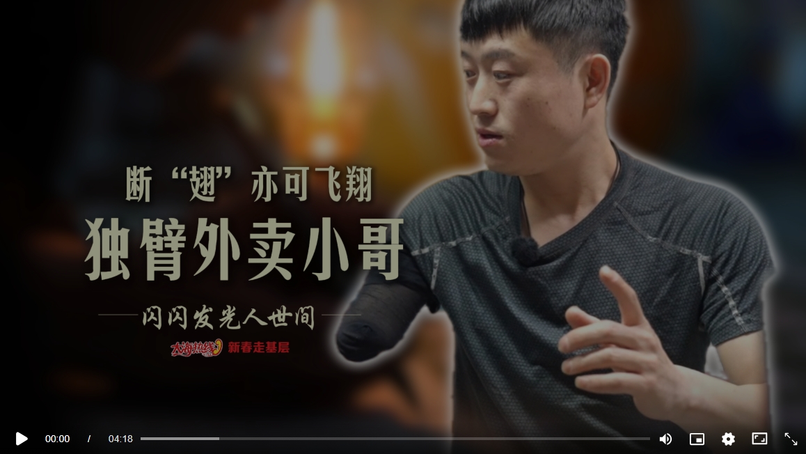 新春走基層 | 遼寧阜新獨(dú)臂外賣小哥,用一條胳膊,撐起生活的重量,始終笑對人生