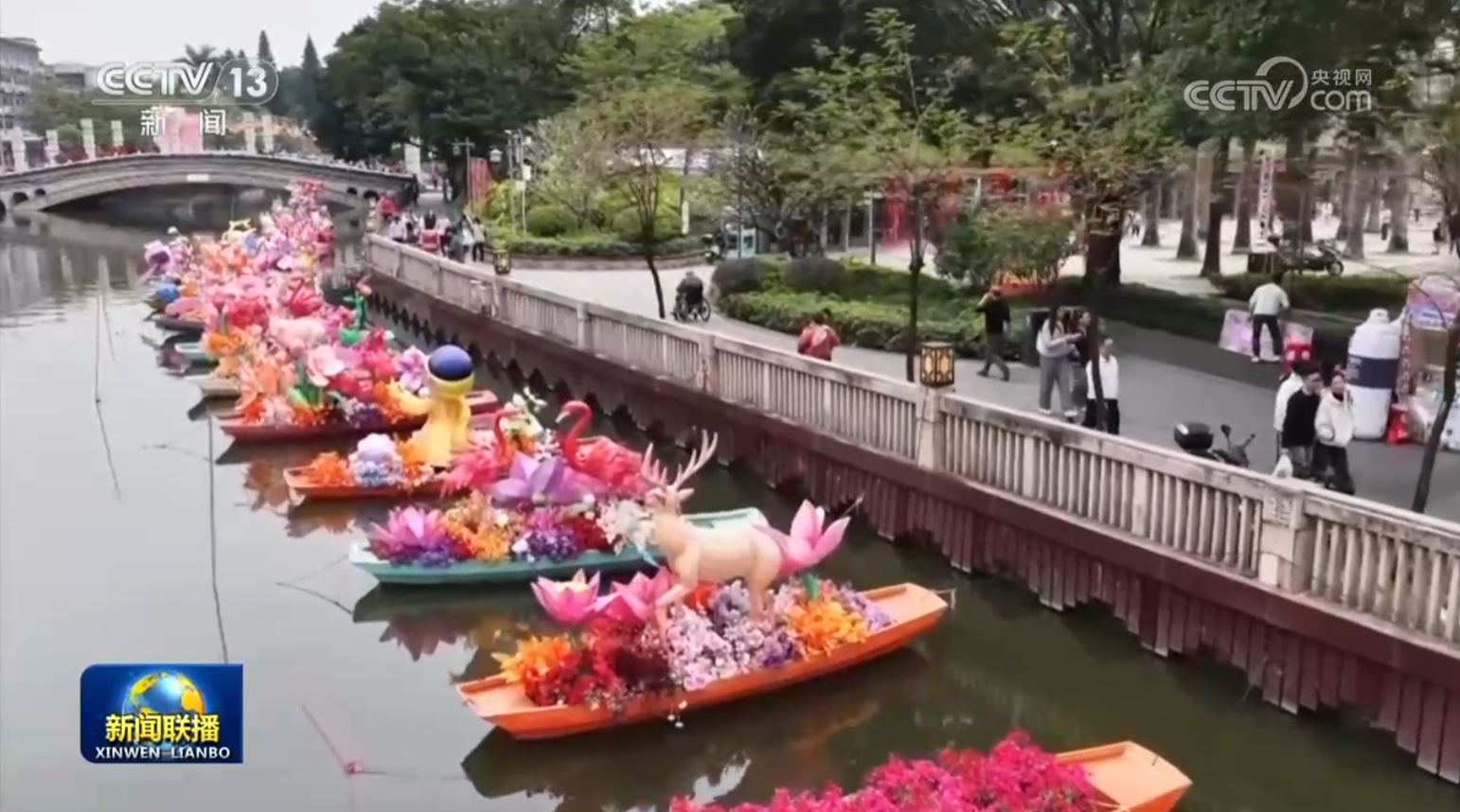 在廣東佛山南海里水鎮(zhèn),嶺南新春水上花市開啟。龍舟花舫、七彩花艇滿載著鮮花,穿梭在河道之上。今年的水上花市還打造近30組水陸花燈,讓人們沉浸式體驗(yàn)嶺南水鄉(xiāng)的年味。