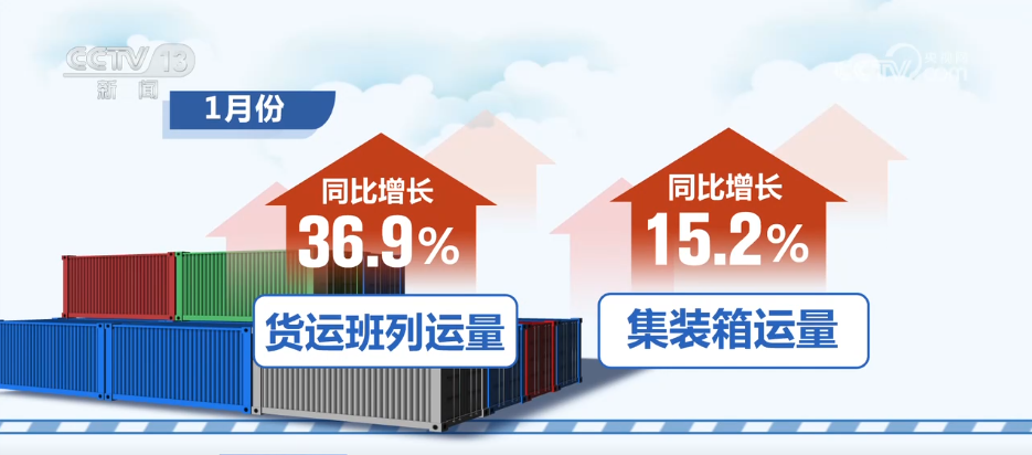 物流產(chǎn)品供給優(yōu)質(zhì)高效。1月份,貨運班列運量同比增長36.9%;集裝箱運量同比增長15.2%;鐵水聯(lián)運量完成155.5萬標箱,同比增長15.3%,有力支持建設(shè)全國統(tǒng)一大市場。