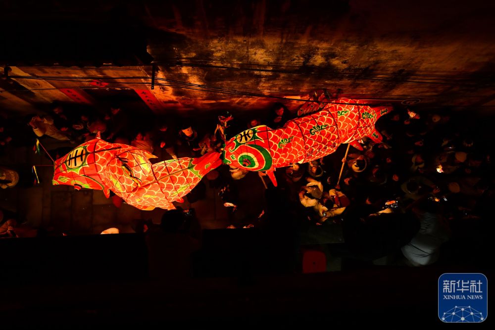 2月7日,瞻淇村魚燈隊(duì)在村中表演。